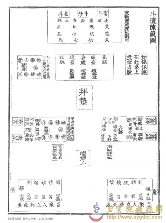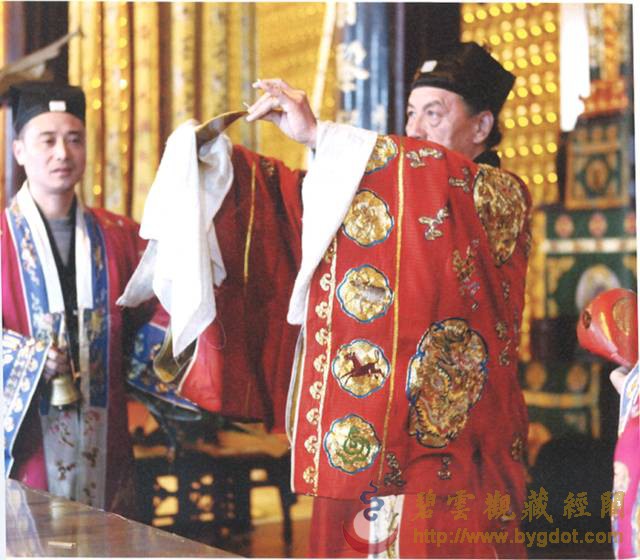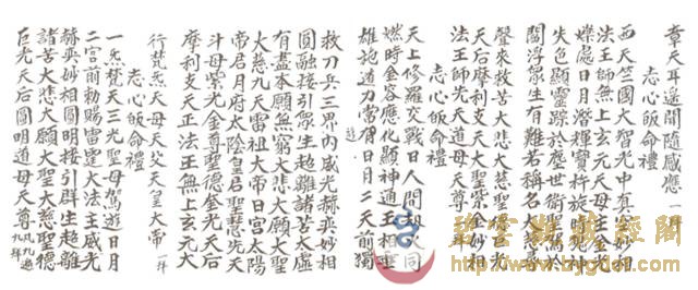 “金箓大斋”作为斋醮的一种,“斋”是指约束身心,“醮”则与“祭”同意。稍具系统的道教斋醮始自六朝的天师道,其结构源于《仪礼》所载的预告、行仪、答谢三段式仪典。 文/观靖 钦安殿道场的类型 道场是由不同单元的“科仪”组成的,各个科仪之间相互独立,又彼此关联。道场的类型多种多样。钦安殿,因其神圣的位置与特殊的意义,一直在明、清两代的宫廷道场活动中占据着特殊的位置。清代钦安殿内举办的道场主要包括金箓大斋、拜表、拜斗、唪经等几种。 苏州正一派「先天奏告拔亡玄科」现场及所铺设罡毯 陶金供图 金箓大斋 将乾隆时期《钦安殿陈设档》中开列的科仪书单与同时期大光明殿法官娄近垣所编《清微黄箓大斋科仪》进行比较,可以看出,乾隆时期钦安殿内举行的最隆重的道场是为期多日的“金箓大斋”。在宫廷文献中,也往往写作“吉祥好事”、“吉祥道场”。 “金箓大斋”作为斋醮的一种,“斋”是指约束身心,“醮”则与“祭”同意。稍具系统的道教斋醮始自六朝的天师道,它主要分“宿启建斋”、“正斋行道”、“散坛言功”三部分,其结构源于《仪礼》所载的预告、行仪、答谢三段式仪典。 (图)《朝真玉斗》中所见之《窦姥语》 一般来说,“金箓大斋”为时五日,第一日即“宿启建斋”部分。这一天的清晨,高功法官(道功最高的道教法师)率领道众举行“发奏科仪”,召请功曹(天神)将举行“吉祥好事”的公文呈送给三界圣众,令使周知。随后的下午举行“建坛科仪”,先请神将肃清坛墠(祭祀场所。筑土曰坛,除地曰墠),再请三清(道教三清:太清道德天尊,玉清元始天尊,上清灵宝天尊)慧光照彻坛场,寓意“三生万物”,又鸣金钟、振玉磬召阴阳二神,寓意“两仪分判”,随后法官又敕水净坛、设五方结界,以此通过法官与道众的道法作用,构成一座虚拟的“虚皇法坛”。是夜,法师率道众登坛,举行正斋之前的“宿启科仪”,即昼夜开启之意。法官先行化坛(将坛场幻化为仙境的科仪组成部分)、卷巾(奏请降临坛场的神仙听取高功的奏疏的科仪组成部分)等功夫,再奉请“五方真文”安镇坛场。最后入科,宣读词文并送化。至此,一座虚拟的室内“虚皇法坛”业已具备,所有预告工作均已完成。 作为金箓大斋主体的“正斋行道”通常为时三日。每日清旦(清晨)开始,法官率领道众登临法坛,分别举行“早朝科仪”、“午朝科仪”、“晚朝科仪”,即所谓“三朝”或“三时行道”。据《上清灵宝大法》载,玉清天中元始天尊所居之七宝层台,每日寅、午、戌三时鸣大法鼓,此时即诸天上帝天真上朝元始。斋醮中之“三朝”即取意于此。 “散坛言功”是“金箓大斋”的完结部分,在“解坛科仪”中,法官恭起安镇坛场的“五方真文”复还天阙,并为曾经效力的功曹、神将向上天言功、代谢,然后陆续将临坛的神将、祖师、诸天上圣恭送回天。最后在“设醮科仪”中,法官以斋主所奉献的供品款谢神明,并再次祈祷祝福。至此为“金箓大斋”圆满结束。 由《钦安殿陈设档》中所见的“金箓大斋”是一套定型于中古时期的道教仪式体系,明代周思德与清代娄近垣皆师法于此。此外,如果适值重大节庆或特殊场合,往往还要加做“拜表科仪”。 拜表科仪 据《国朝宫史》所载:“每遇年节,钦安殿各设道场,拜进表文。”所谓拜表,即高功法官通过“发炉”、“出官”、“冲表步罡”、“飞神谒帝”等道法内秘,向天帝拜进表章,面陈祈福或拔亡之事(编按:拔亡,即“亡斗”。“亡”指亡魂,“斗”指北斗星君,是道教尊神,主管人之生死。道士通过上表奏疏,献茶烧香,燃点斗灯,恭迎斗母神莅临酿坛,达到接引亡魂、升登福地的目的)。法节次中,以“冲表步罡”、“飞神谒帝”最为重要。届时抱厦正中供案前铺设刺绣罡毯一块,罡毯上刺绣有青龙、白虎、朱雀、玄武的图像以及二十八宿、南辰北斗等星图。法官更衣毕,将朝简改换玉圭,以双手端持,从罡毯东北角箕宿开始踏“二十八宿罡”,其步法为沿顺时针顺序踏步,每踏一步即一宿,手并掐一诀,同时脑中存想自己元神“旋步星空之上”,如此围绕罡毯一周至东北角斗宿结束,此后又踏“三台罡”、“五行罡”、“九灵飞步”等罡步,并存想“元神步虚太空,高奔天宫”,最终法官再顺时针旋绕一周面向西北乾位天门立定,三大拜之后,开始进入最为关键的“飞神谒帝”节次。 清 高上玉皇本行集经卷 《钦安殿陈设档》中记载:“花褥一个(其下贴黄签)。道光十九年……征去花褥一个,拜表用。”此花褥即是法官“飞神谒帝法”所用。上言法官步罡结束,有侍职道士将褥子铺于坛上,法官跪下,口念“恭按家传上道,拜进表文,蹑景飞神,万象寥廓。罡风灏灏凛凛乎,万里遥途;道气腾腾坦坦然,九霄之正路……”,随即俯伏于褥上,默运体内真气化为元神,过三关至顶门而出,依凭师密旨存想,飞升上天,于上帝御前拜呈表文,虔诚祈愿,事毕乃从原路返回,自顶门入体内。在“冲表步罡”及“飞神谒帝”两个节次中,需于坛前悬挂《默祷图》,图中所描绘者即是法师行“飞神谒帝法”时所存想之部分景象。 拜斗道场 紫禁城内位育斋现貌 雍正八年,娄近垣因为清世宗礼斗禳病灵应而开始得到信任,并于次年被封为钦安殿住持,当时御花园东北隅的位育斋及宫内多处都建立了斗坛,成为固定的礼斗坛场。钦安殿也成了